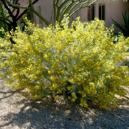 Evergreen shrub with small silver-gray leaves, and beautiful, bright yellow blooms. Feathery Cassia is covered in bright yellow blooms from spring into summer, followed by papery seed pods. These versatile shrubs are easy to care for.